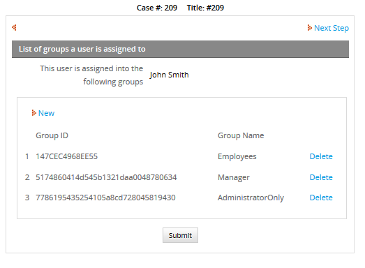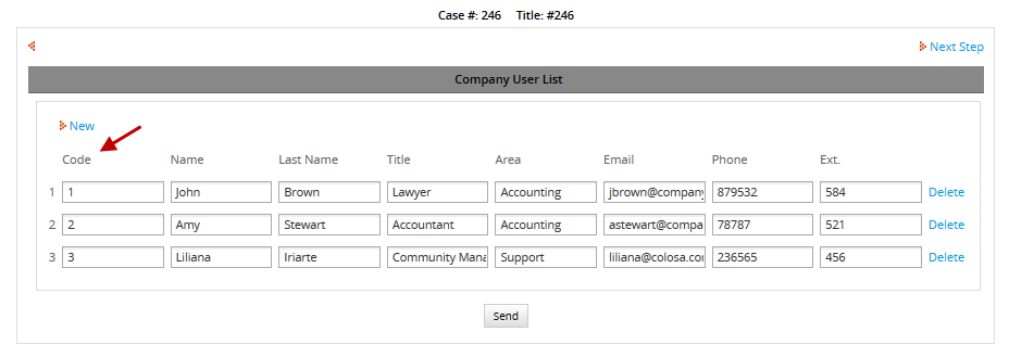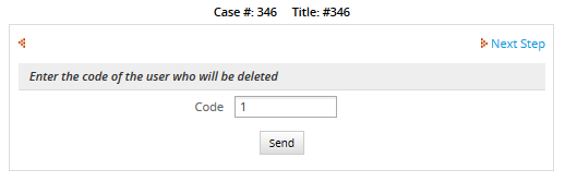 3. Execute a case and enter the code of the user to be deleted, which in this example is 1 to delete the user "John Meyer":