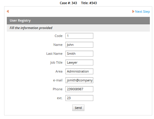 4. Finally, execute a case and fill in the DynaForm with user's information: