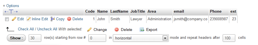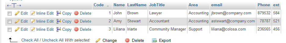 Note that this example will only work if the names of the fields in the table are exactly the same as the fields in the grid. Also remember that table and field names are case sensitive by default if MySQL is installed in a Linux or UNIX server.