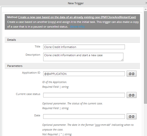 - string appUid: The unique ID of the case to be cloned. To clone the current case, use the system variable @@APPLICATION.