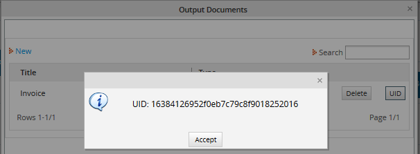 - string outputID: The unique ID of the Output Document, which can be found by opening the process for editing, going to the OUTPUT DOCUMENTS and clicking on the UID button for an Output Documnt. It can also found by following these instructions.