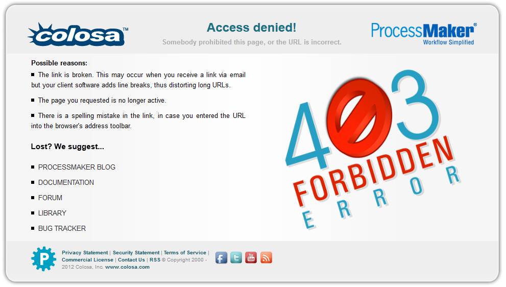 If user types an incorrect URL or if the page is prohibited, he will be redirected automatically to the following page: