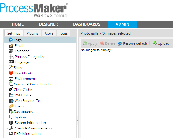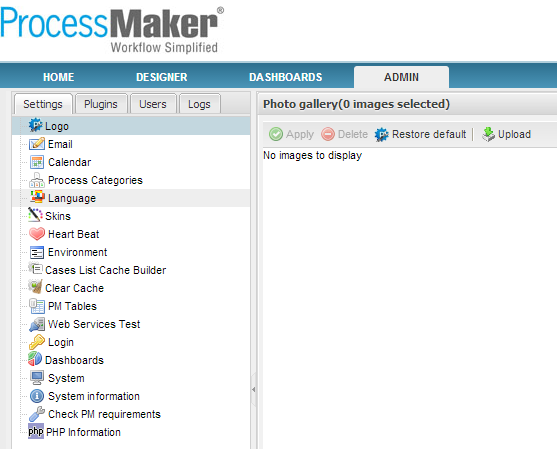 However, make sure that the logo image file is no more than 50 pixels high, otherwise, it will shove down the interface, so the bottom of the ProcessMaker interface is no longer viewable in the web browser.