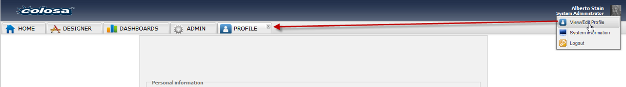 Another option is the possibility to close a tab, for example if you open an extra tab like Profile, it will be open as follows: