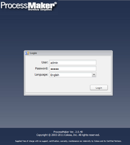 Then, the ProcessMaker loading page will be:
