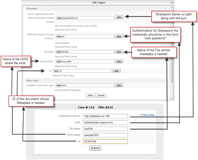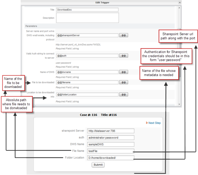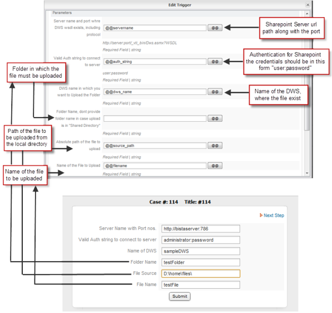 This Trigger will upload the file to a specified Folder in DWS of Sharepoint Server.