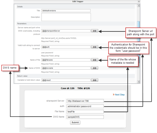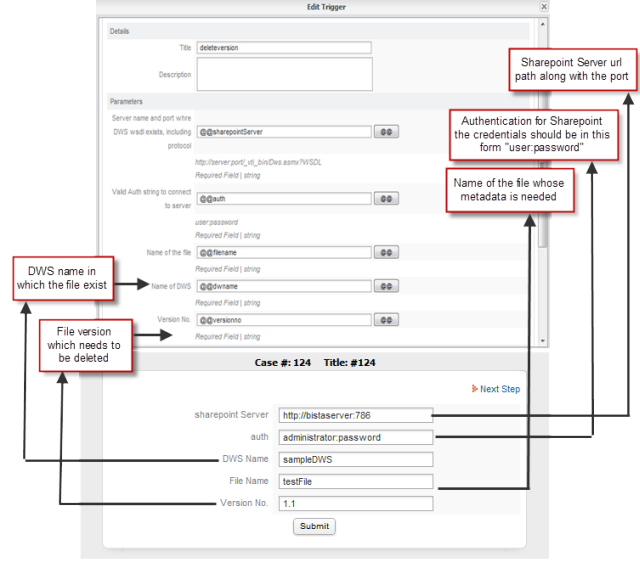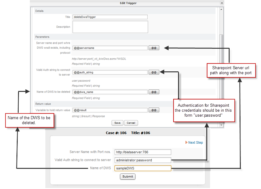 This trigger will delete the specified DWS(Document WorkSpace) from the SharePoint Server.