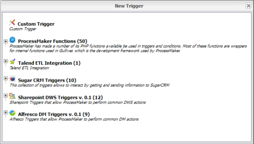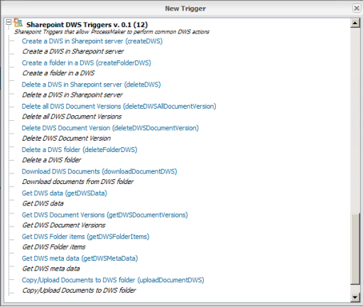 Choose Sharepoint DWS Triggers v.0.1 (12)', triggers will listed in order to created them.