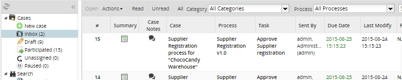 - The Browser client requires ProcessMaker server to show the cases lists in Inbox.