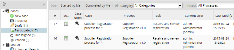 - The participated view has these changes: The counter display the number of processes but the grid can display more than the specified number because the grid display all the tasks in which participated the user in a process. Usually there are more records display in the grid.