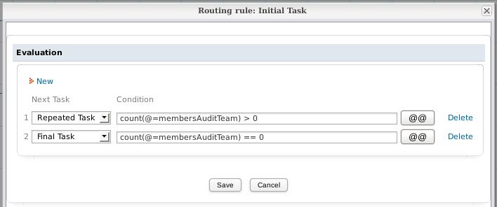 For example, the "Repeating Task" needs to be executed once by every member of a group named "Audit Team" (which has a unique ID of "2509613254f466254cdcf07067330602"). Set a Trigger to fire in the "Initial Task" which will lookup the members of the "Audit Team". The Trigger creates: