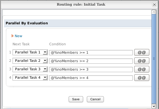 - For DynaForm steps, create a separate DynaForm for each of the parallel tasks. If the same DynaForm is used in all the parallel tasks, then every user can overwrite the data entered by the other users.