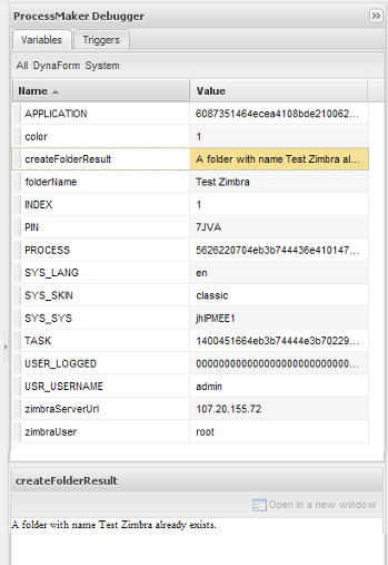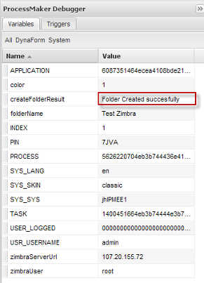 Click on Submit and in the createFolderResult variable you will get a message “Folder Created Successfully”.